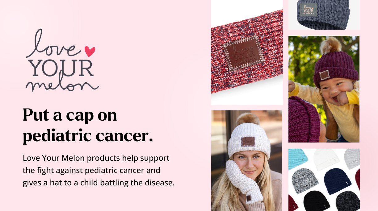 Warm heads and hearts with Love Your Melon’s knit hats and apparel. Fifty percent of profits go to nonprofits around the world fighting pediatric cancer. Your purchases help create therapeutic experiences and fund charitable programming initiatives for children and families battling cancer.